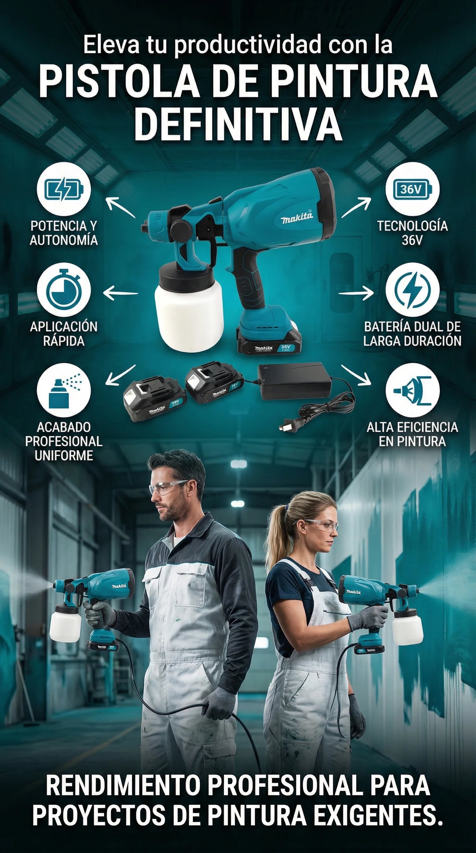 “Excelente pistola de pintura inalámbrica. Muy fácil de usar y sin cables que estorben. La pintura sale uniforme y el acabado quedó muy bien 👌.”